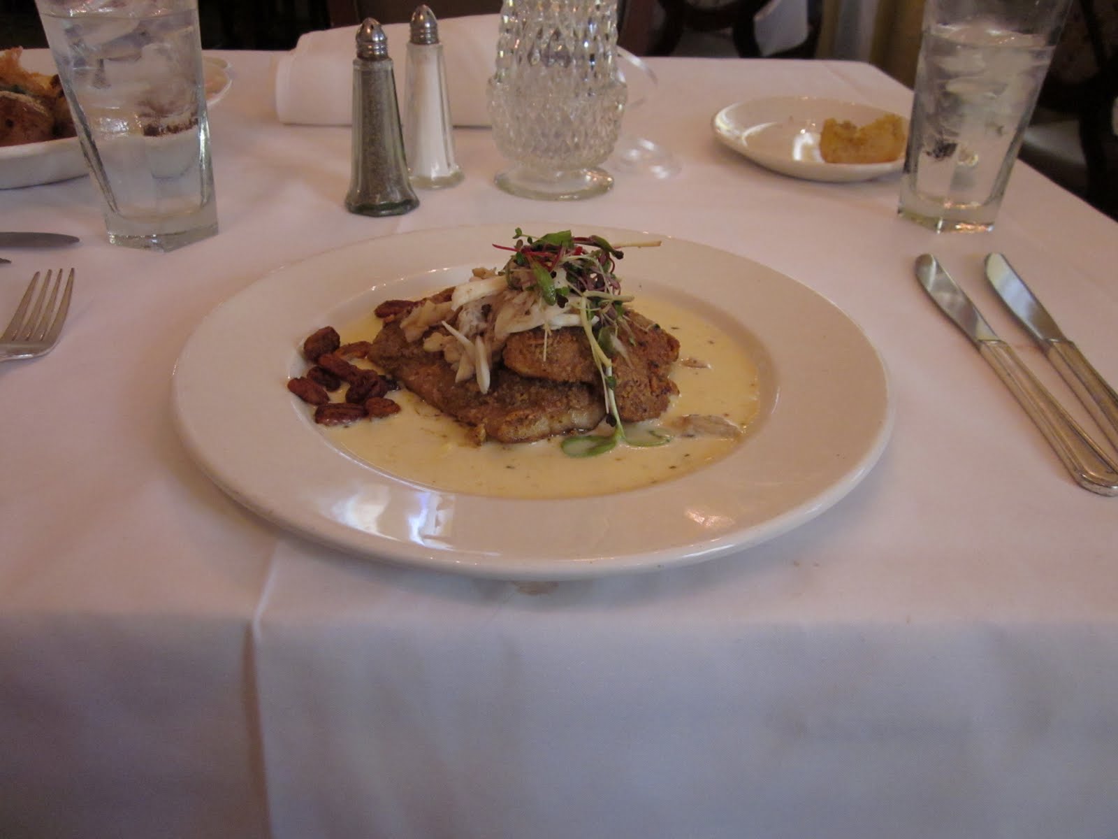 We started with mimosas, the best I ever had; the perfect blend of freshly squeezed O.J. and champagne that was more than a cut above black bottle bubbly. I had a trifecta of soups; some sort of vegetable concoction featuring produce I probably would never be able to find in Illinois, chicken and andouille gumbo, and turtle soup. Sample-sized portions were served in three delicate white demitasse cups on an immaculate over-sized plate. Our waiter gave me a short but comprehensive lecture on the difference between redfish and drum; neither a bad bet coated in a pecan crust and floated in a shallow pool of cream sauce. (I went with the drum fish.) And for dessert – European dark chocolate cake with perfectly round and robust blackberries drizzled with a Bordeaux reduction. Argyle Wolf-Knap (Is that not the best name for a sommelier?) recommended a Sancerre which spring boarded me out of my sauvignon blanc rut and had me mumbling the sounds of savoring through most of the meal. (Num-num-num.)