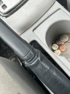 I pulled my key out of the ignition and — and damn if the key did not slip between the driver’s seat and the console.